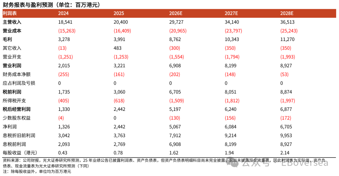 2)主营业务收入同比双位数增长,收入占比提升。分业务板块看:2025全年公司覆铜面板/物业/投资收入分别为202.25亿/0.78亿/0.97亿港元,同比+10.5%/-38.7%/-11.4%。受益于覆铜板及上游原材料(电子玻纤纱、玻纤布及铜箔)需求强劲,25年公司产品相较于24年实现量价齐升,25年电子玻纤纱、玻纤布利润超6亿港元,同比+70%。此外,公司25年业绩公告称“目前多家覆铜板公司因缺电子布影响生产,电子布价格仍在不断攀升”,我们预计26年电子玻纤纱、玻纤布利润有望大幅提升。